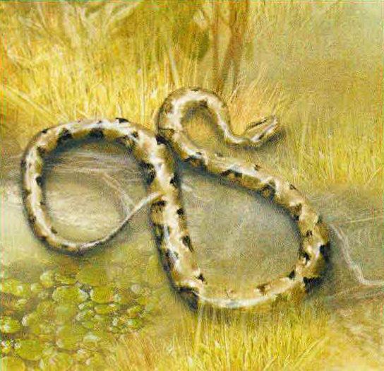 Во время отдыха змея держит голову приподнятой, внимательно осматривая окрестности.