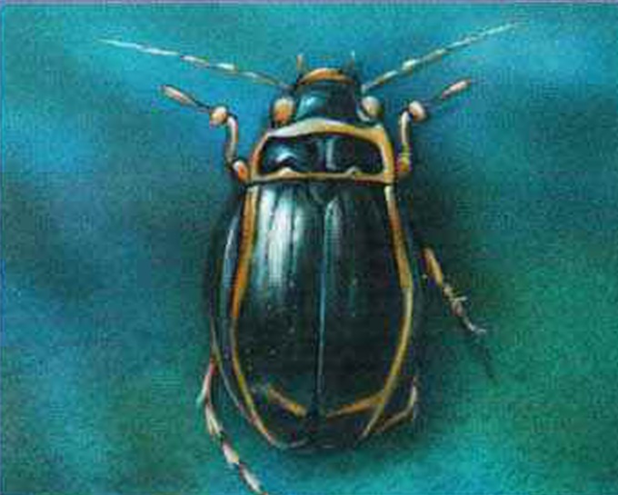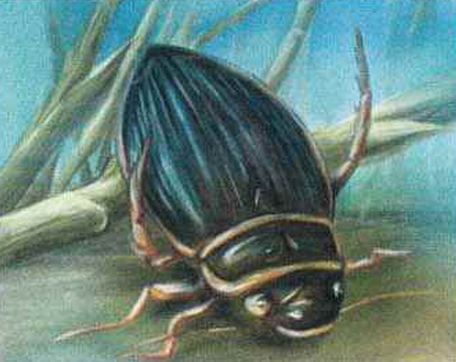 Окаймленный плавунец - крупный хищный жук, приспособленный к жизни в водной среде.