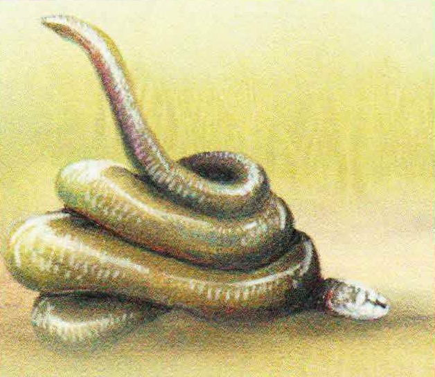 Пряча голову внутрь колец, змея выставляет наружу хвост, чтобы сбить с толку хищника.