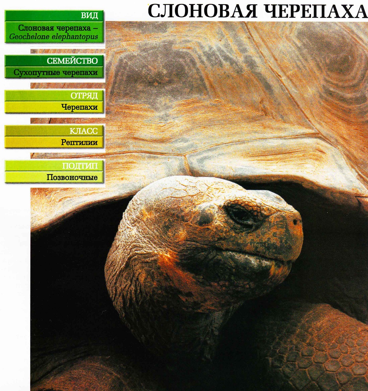 Описание слоновой черепахи.