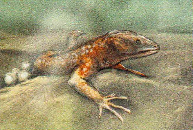 Приготовив ямку, ящерица откладывает в нее яйца, оставляя их на произвол судьбы.